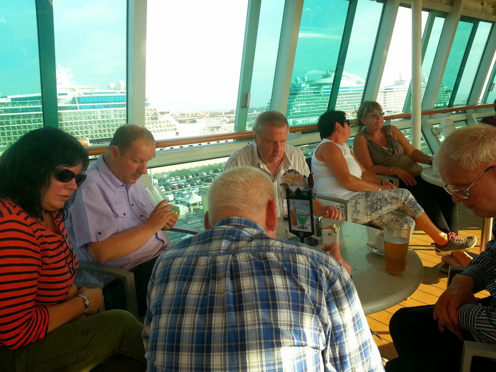 En herlig tur med sol og varme, gode venner og glade gutter fra Hønen. Beste turen de noensinne har hatt sier de. På de to utvendige lugarene var det veranda som ble åpnet mellom oss så den ble litt stor. Vi synes også det er bra, ikke så mye tid for oss selv, men det er flott å se hvor glade disse guttene er. Jeg gikk tur på dekk, det er en sånn jogge/spaser gate hele veien rundt på skipet. Geir danset (da hadde han blinde stokken) foran hele veien og folk smilte og nikket og syntes det var fint å se de hygget seg slik.